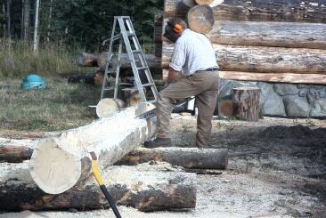 Der Blockhausbau erfolgt in Handarbeit